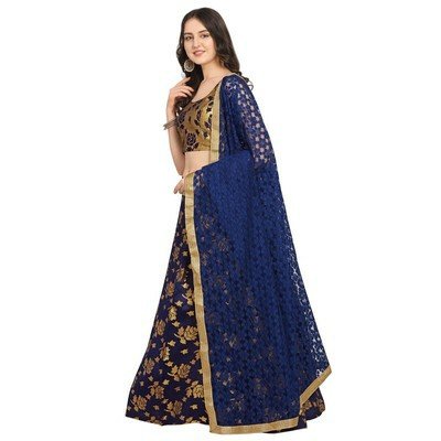 Blue Semi Stiched Woven Unstiched Lehenga Choli