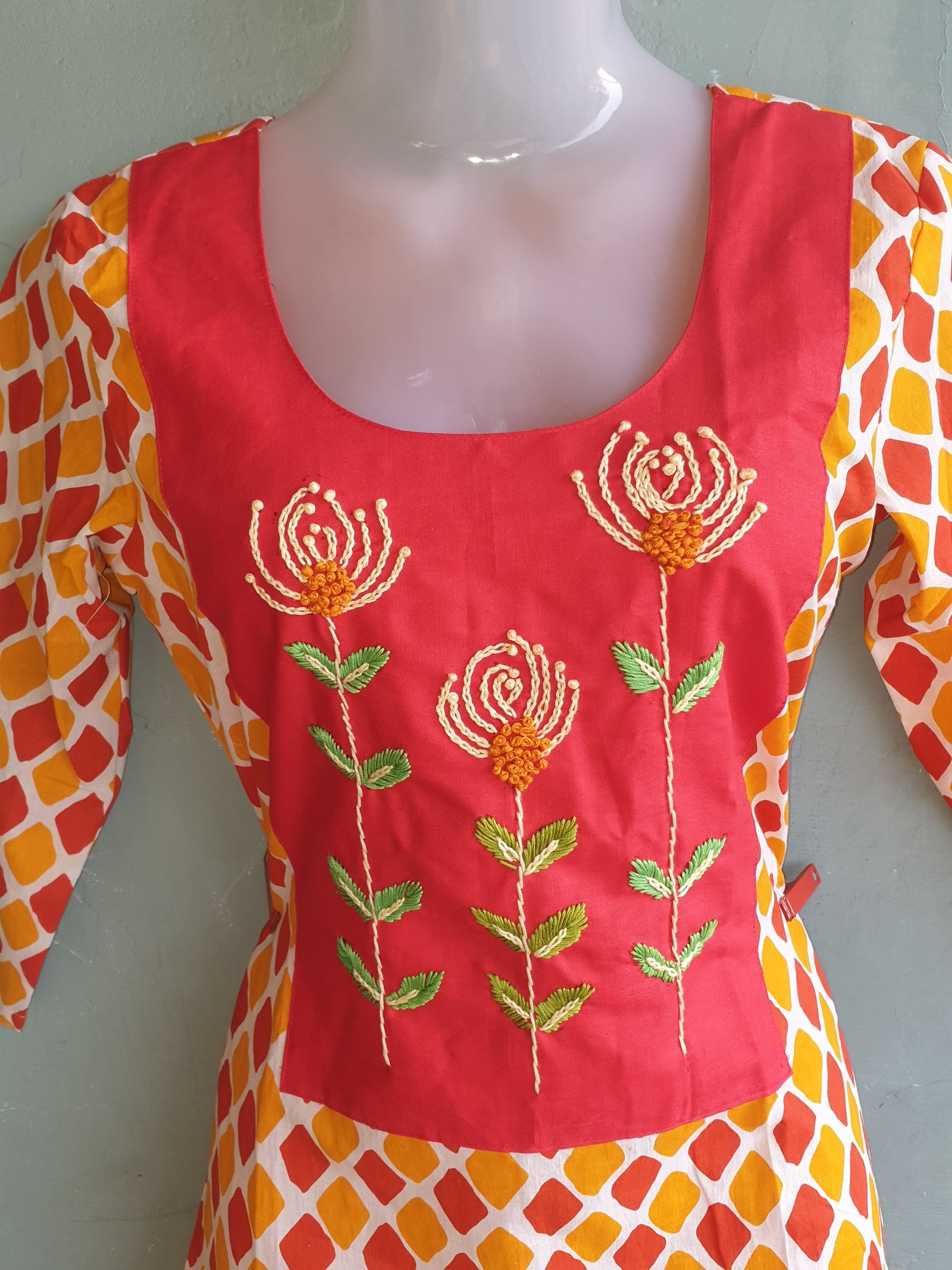 Multi Color Cotton Kurti with Patch Hand Work