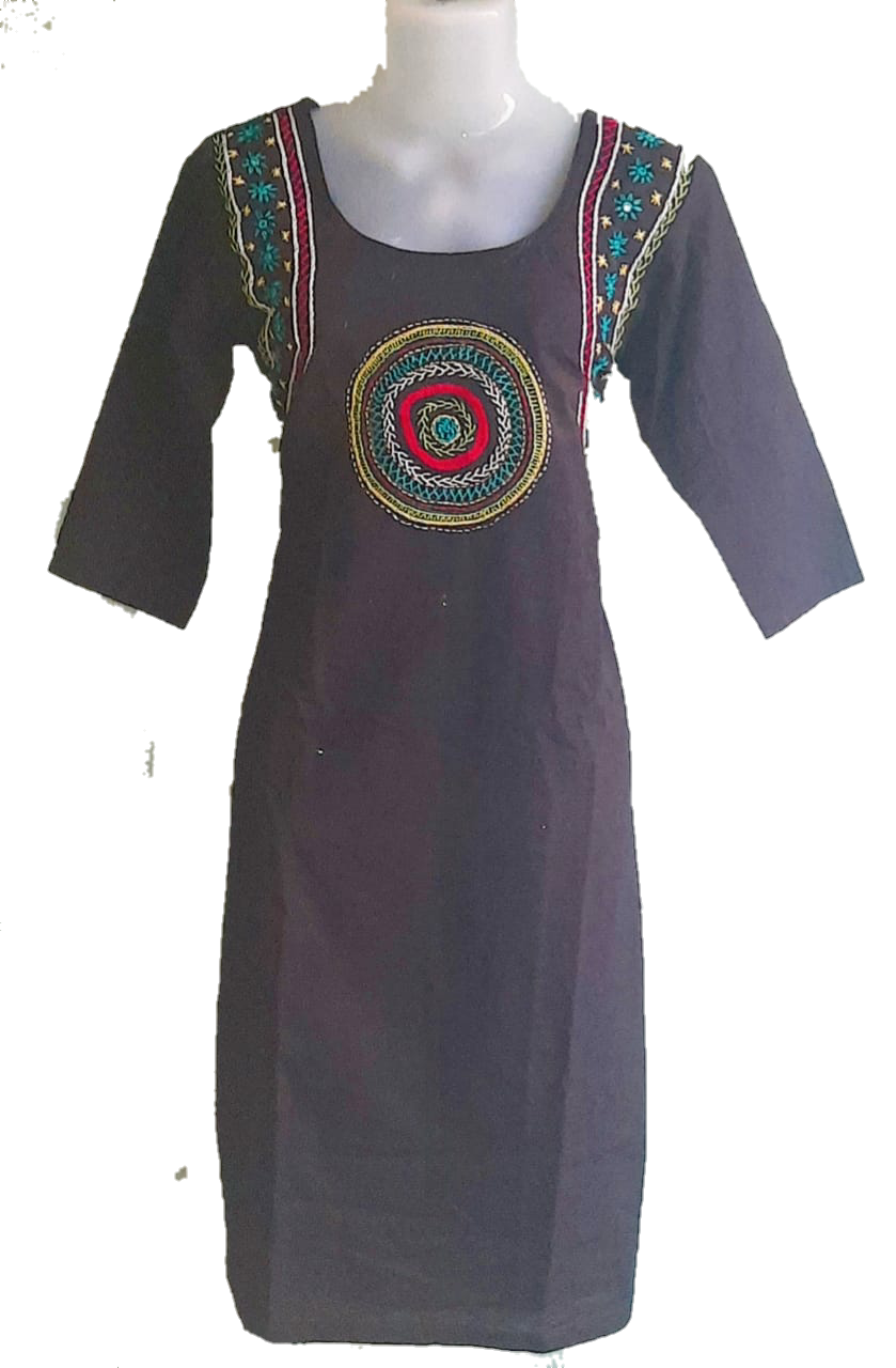 Black Cotton Kurti with Hand Work