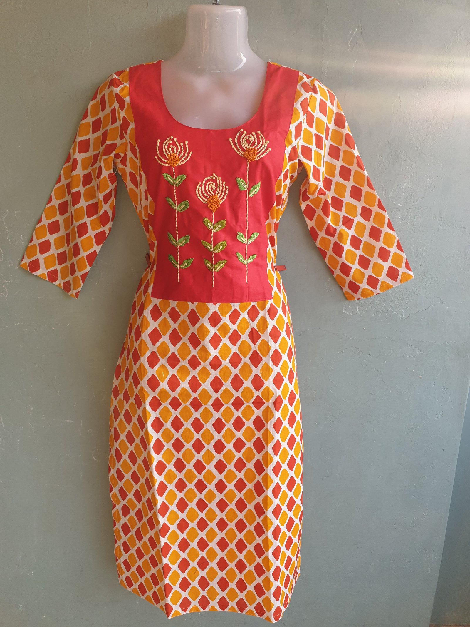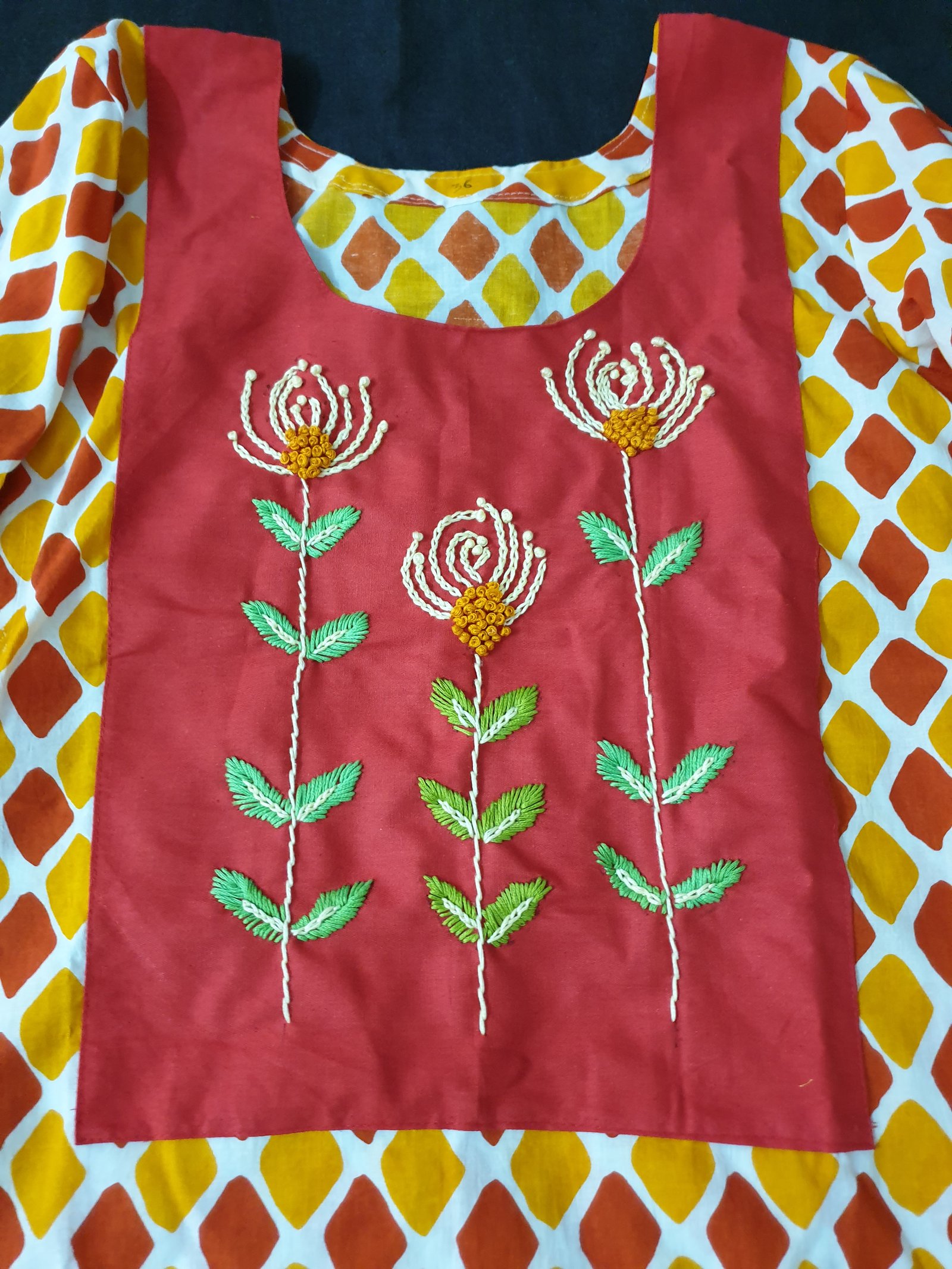 Multi Color Cotton Kurti with Patch Hand Work